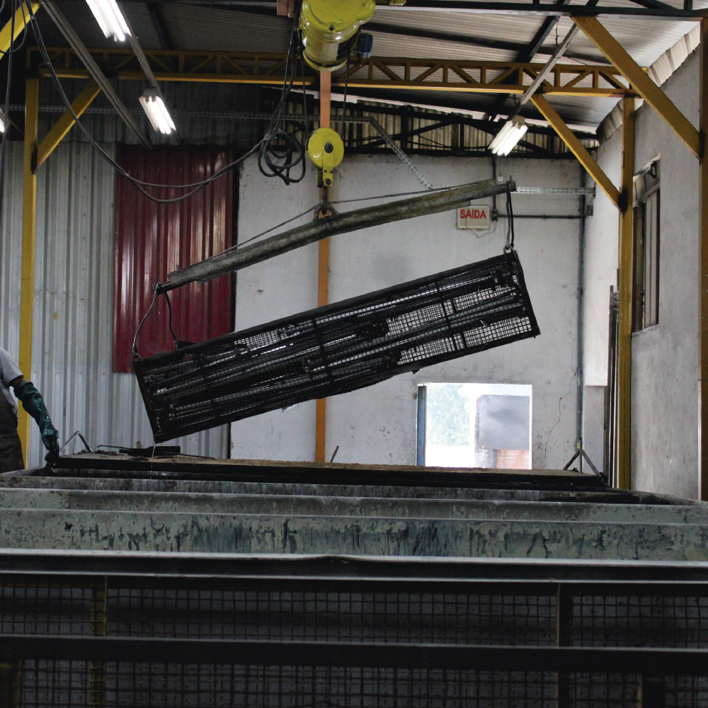 Nosso processo de jateamento abrasivo com granalha de aço promove a limpeza e preparação da superfície metálica, eliminando ferrugem, tinta antiga e demais contaminantes. Esse tratamento assegura melhor aderência e qualidade no acabamento final.