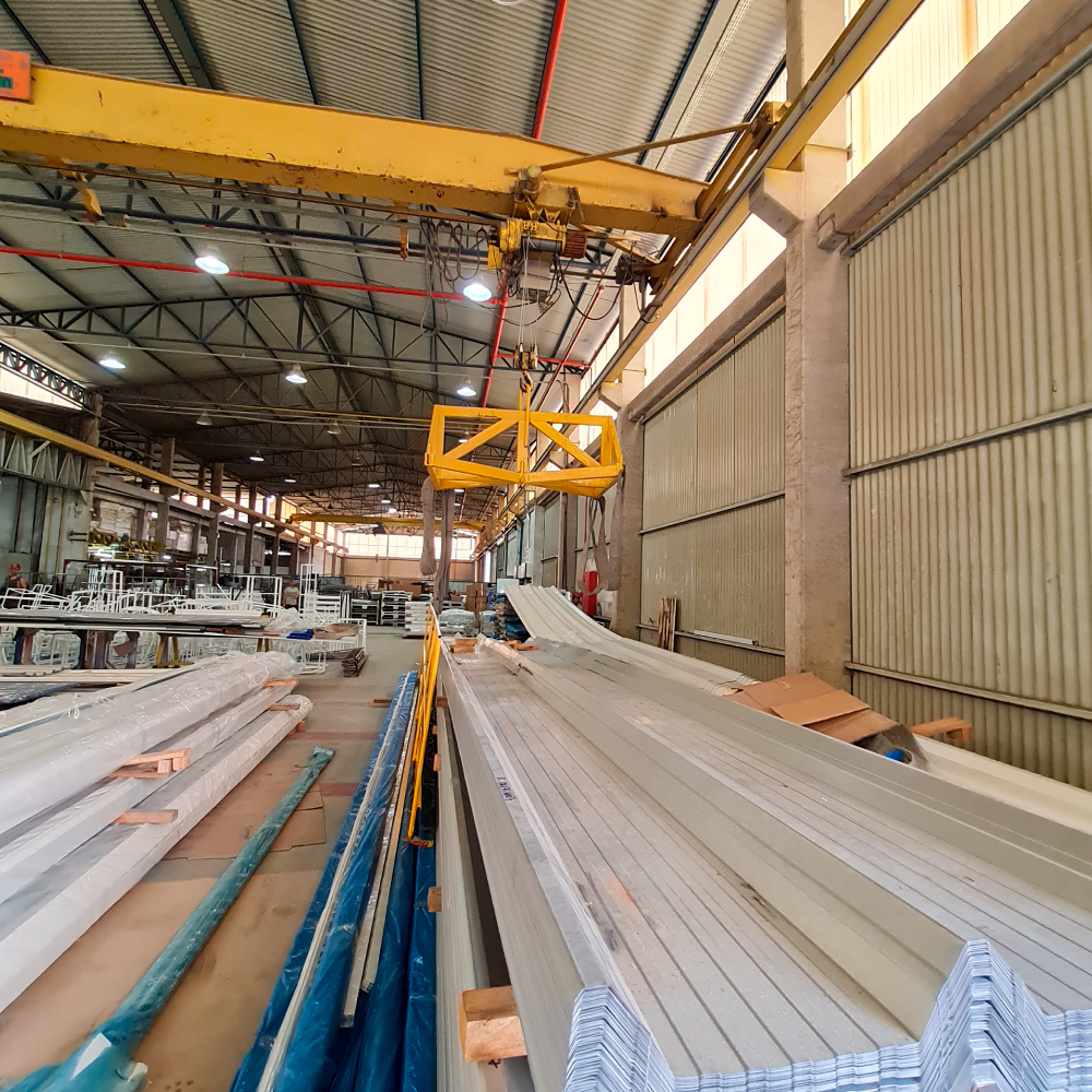 Contamos com quatro pontes rolantes para facilitar o manuseio e agilizar a produção. Se quiser, deixo os dois textos no mesmo padrão ou adapto para tom mais comercial.
