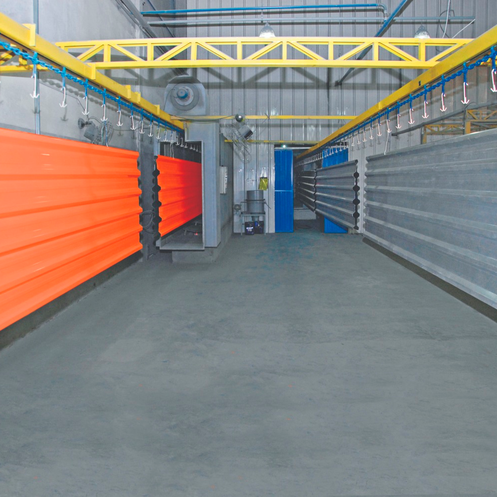Nossa área de pintura contínua é equipada com quatro linhas de produção, permitindo alto volume de peças processadas simultaneamente, garantindo padronização, eficiência e qualidade no acabamento.